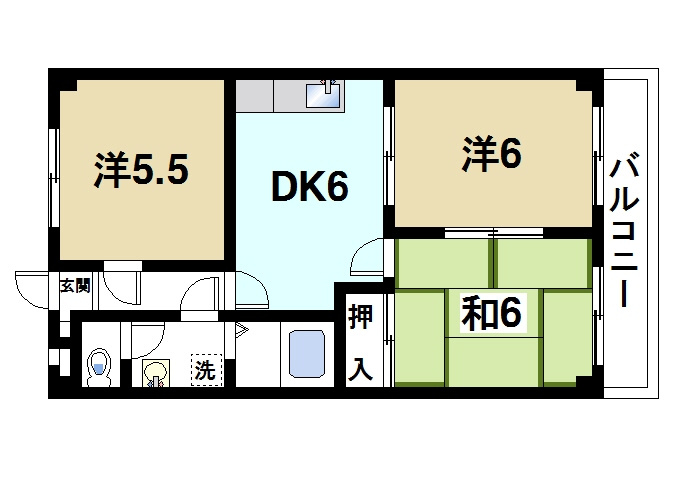 DK 6.0帖/和室 6.0帖/洋室 6.0帖/洋室 5.5帖 - 向き